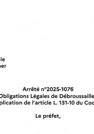 Arrêté n°2025-1076 relatif aux Obligations Légales de Débroussaillement (OLD) pris en application de l'article L 131-10 du Code forestier